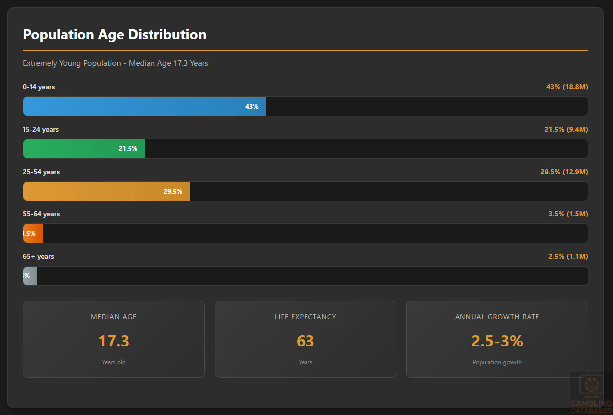 | Median Age | 17.3 years | Extremely young population |
