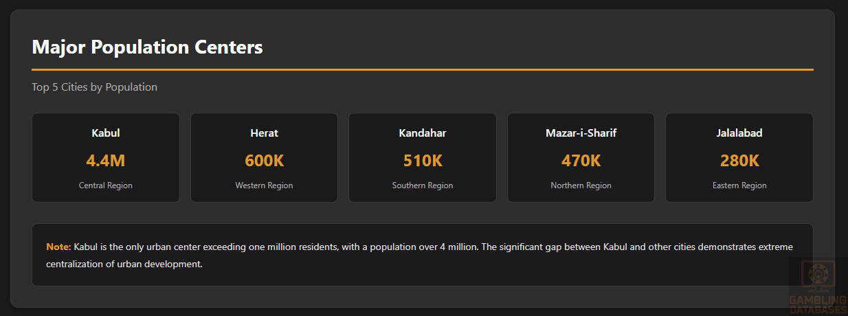 With a population of 43.8 million and extremely limited digital infrastructure, Afghanistan presents insurmountable regulatory, political, and operational barriers for iGaming market entry. All forms of gambling are classified as haram under Sharia law, with severe penalties for violations.