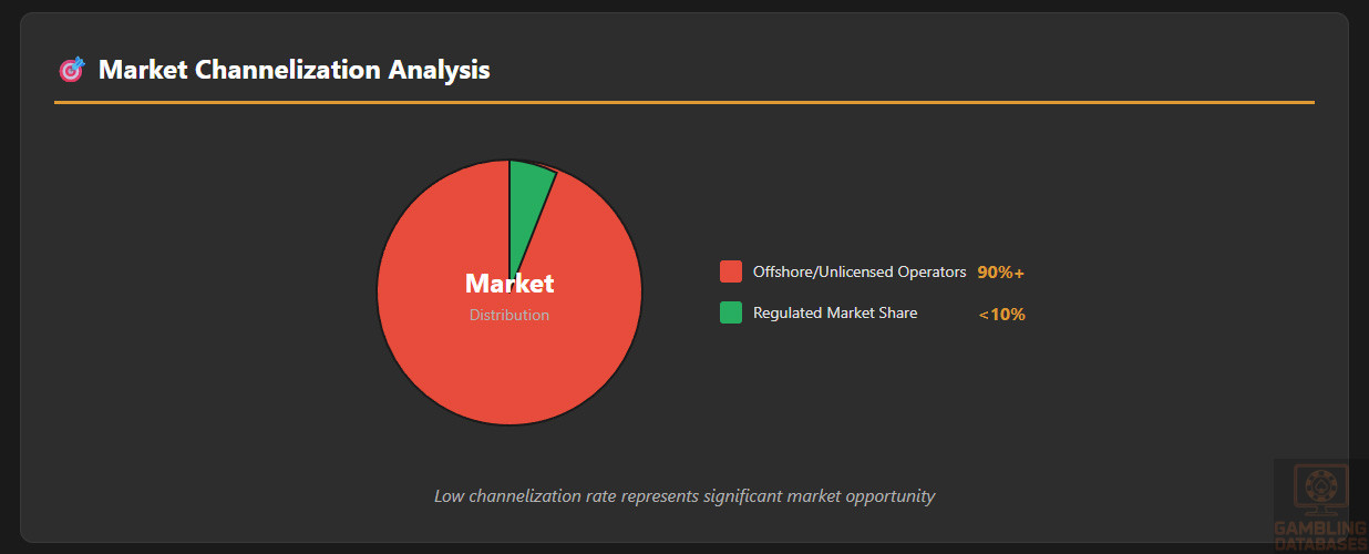 - Low Channelization: Over 90 percent of market remains offshore and unlicensed, indicating regulatory enforcement challenges and competitive pricing pressures from unregulated operators.