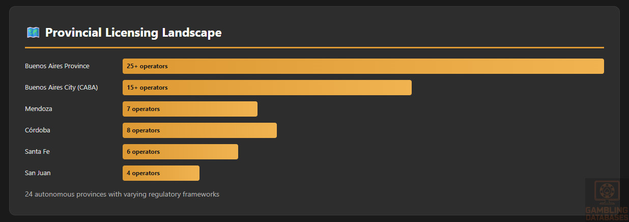As of 2025, over 25 operators hold licenses in Buenos Aires Province alone, with Mendoza authorizing seven active operators and other provinces granting between 2-10 licenses each.