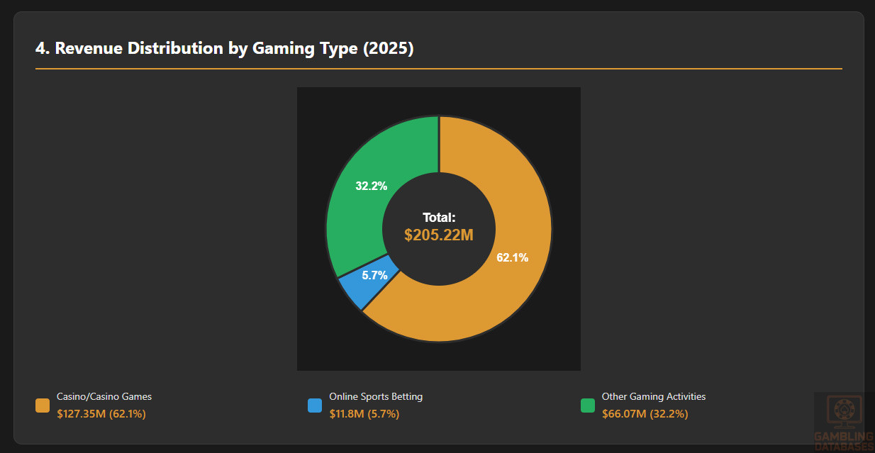 | Online Sports Betting Revenue (2025) | $11.8 million USD |