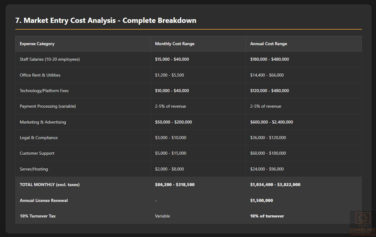| Licensed Operators (Casino + Sports Betting) | ⚠️ HIGH | Extreme taxation burden (50-70% effective rate) makes profitability unlikely without massive scale. $1.5M annual license fee is non-refundable fixed cost. Mandatory local infrastructure (servers, staff, office) creates significant operational burden. Regulatory environment increasingly hostile with 2025 reforms doubling taxes and adding restrictions. Future tax increases likely. Advertising severely restricted. Exit difficult due to limited buyer market. VERDICT: HIGH RISK due to unfavorable economics and regulatory trajectory. |