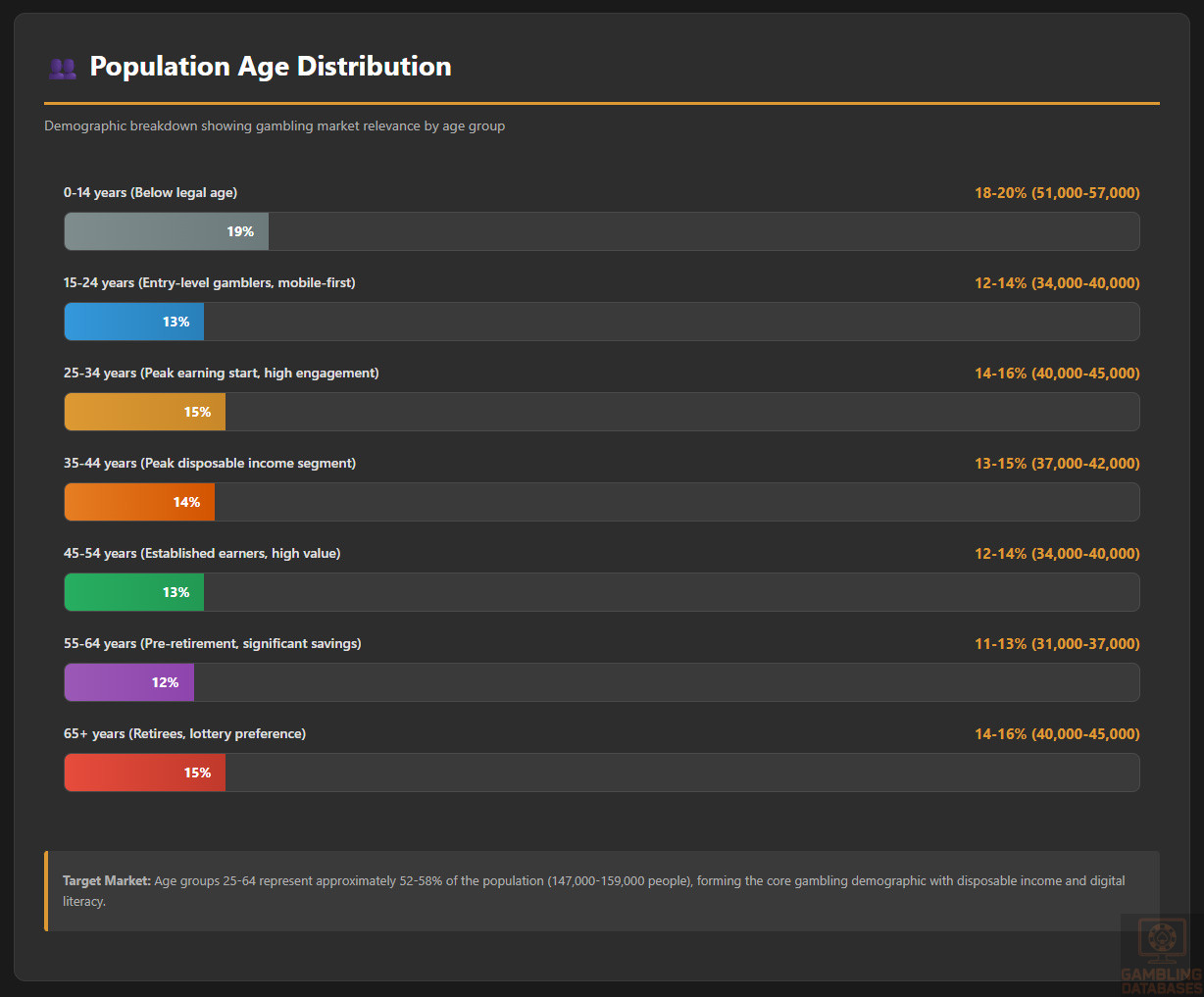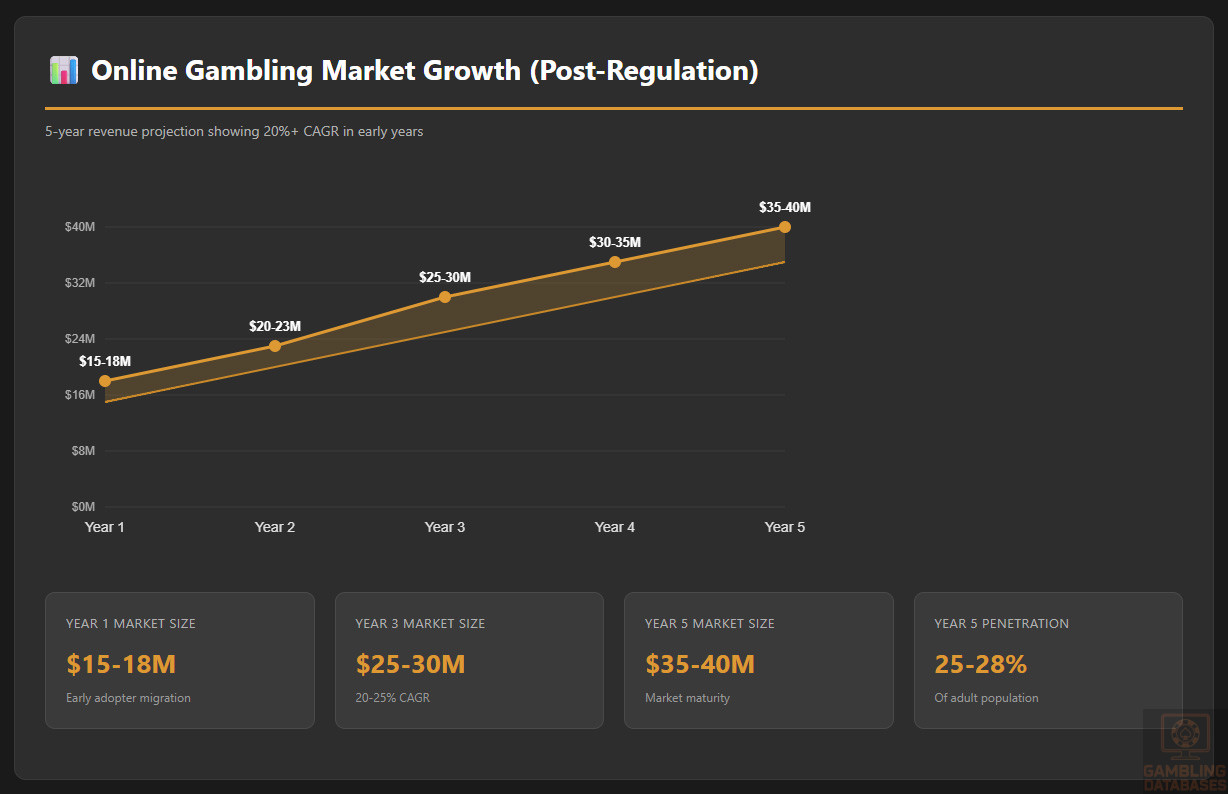 | Estimated Active Gamblers | 45,000-60,000 | 16-21% of population currently using offshore sites |