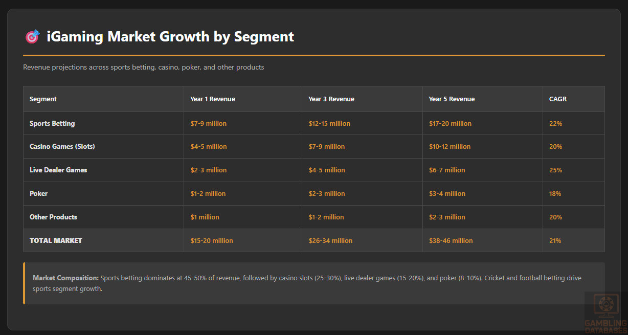 - β Casino-Focused Operator: While online casino IS expected to be legal (unlike prohibited land-based casinos), casino represents only 35-40% of market vs 60% sports betting. Casino-focused operators face uphill battle in sports-dominated market.