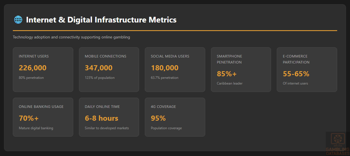 Market Concentration: The absence of local regulation means market share data is unavailable. However, industry estimates suggest 45,000-60,000 Barbadians actively use offshore gambling platforms, representing 16-21% of the population. This participation rate aligns with Caribbean regional averages for mature markets.
