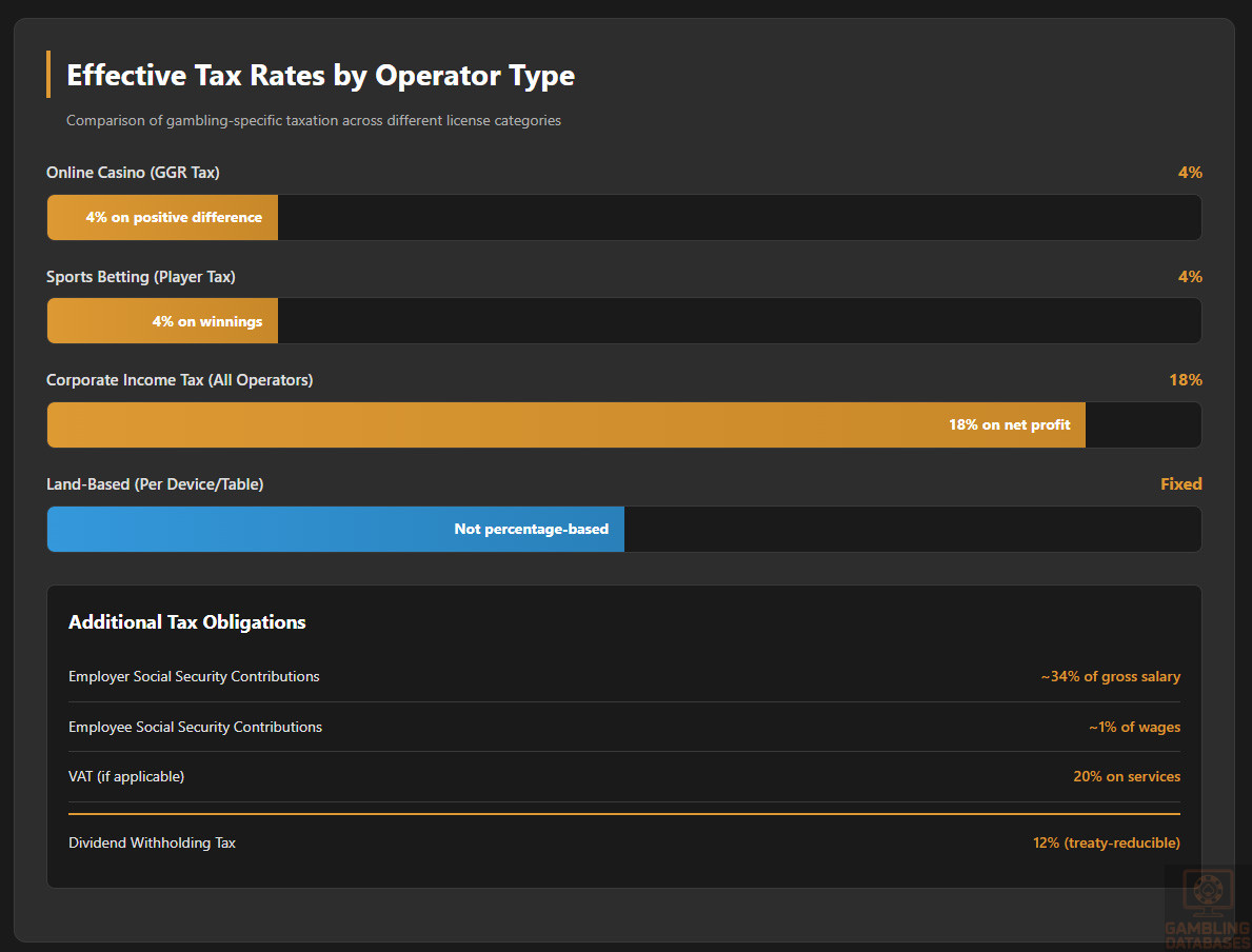 | Player Winnings Tax | 4% | Withheld by operators |