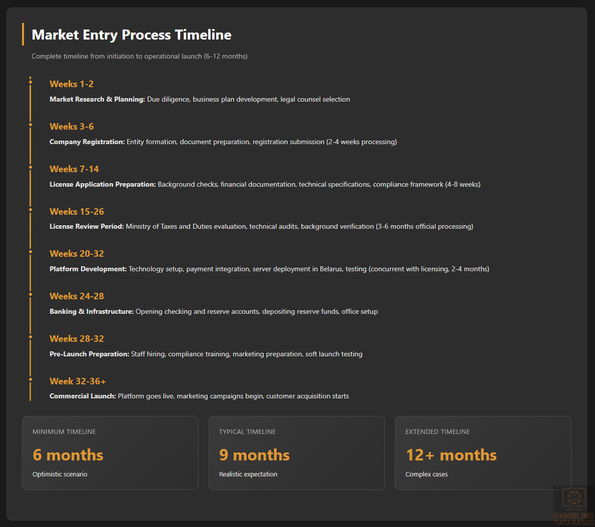 | Market Entry Timeline | 6-12 months | Including licensing process |
