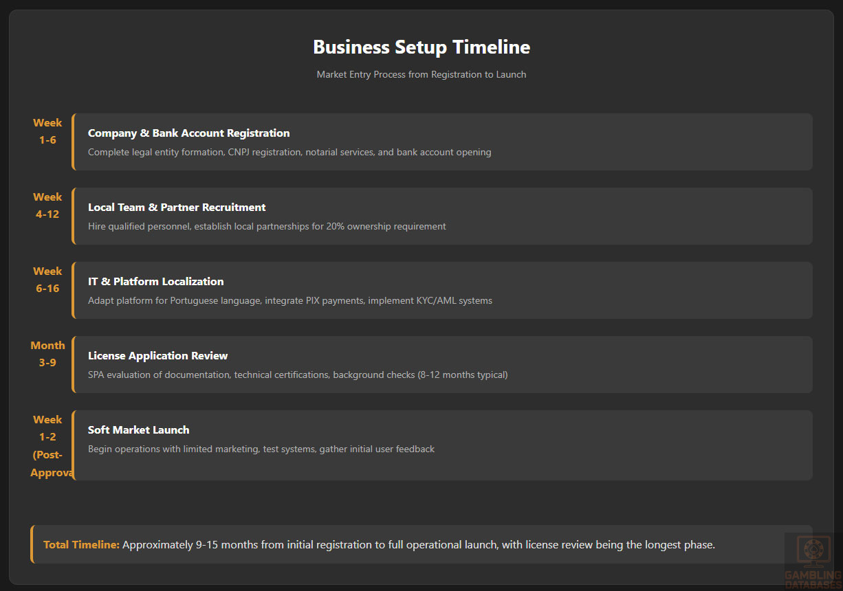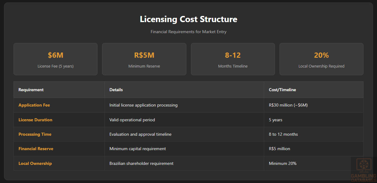 Operators face high entry barriers including the payment of a substantial license fee of R$30 million (approx. USD 6 million) for a five-year license, which covers application processing and regulatory oversight. The typical licensing timeline ranges from 8 to 12 months, reflecting rigorous vetting procedures and background checks on company principals.