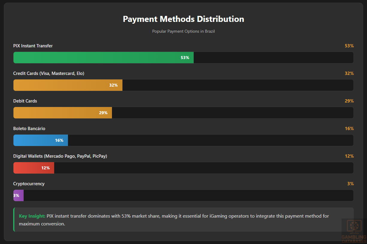 - Modern Payment Infrastructure: PIX instant payment system dominates (53% of transactions), providing fast settlement and high conversion