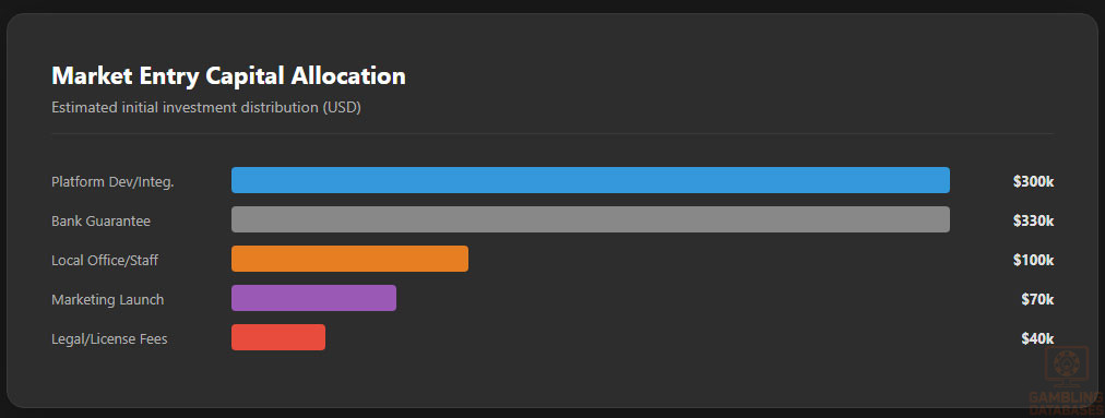 Profitability Assessment: DIFFICULT. While the market volume is growing, the government takes nearly half of the revenue through various tax layers. This market is volume-dependent. Small operators will struggle to cover the $330k guarantee and fixed costs. Only viable for well-capitalized operators aiming for long-term market share dominance.