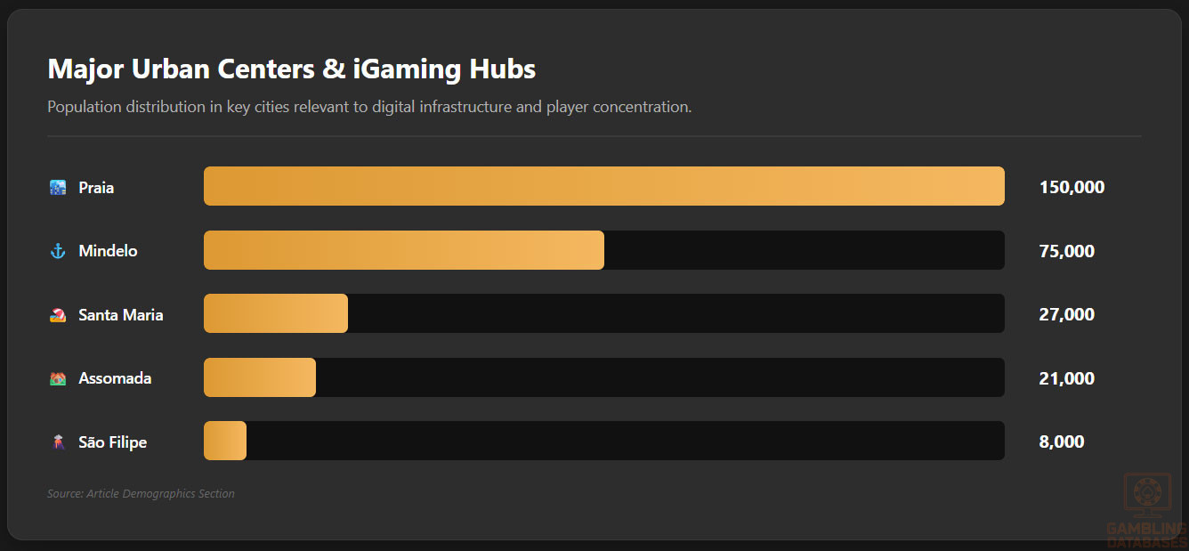 Major urban centers include Praia, the capital, which concentrates economic and entertainment activities relevant to iGaming operators.