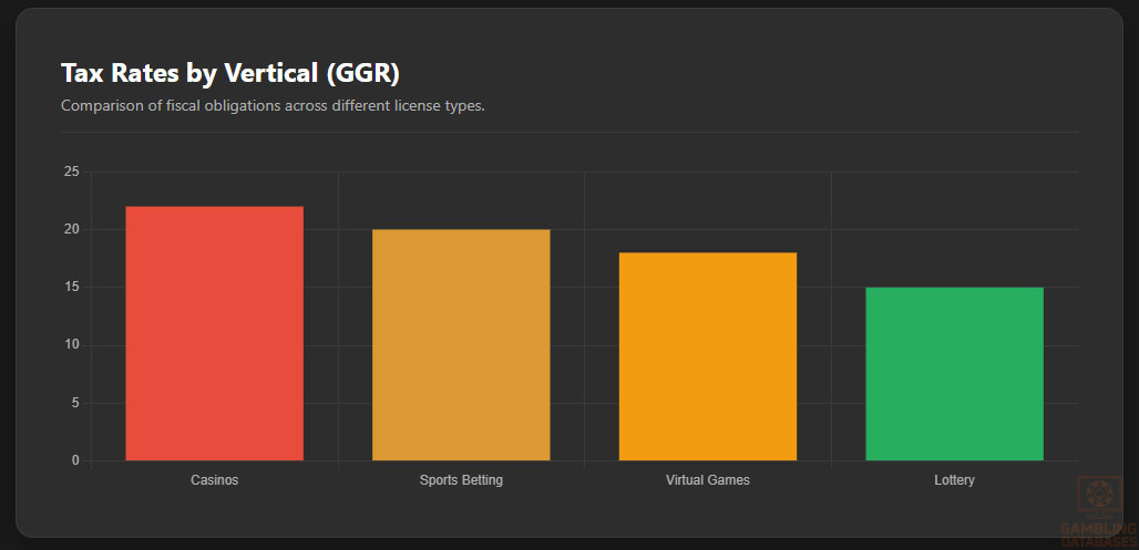 Turnover taxes and other fixed operational levies apply variably based on game category and license terms. These combined fiscal obligations form a significant cost component for market participants.