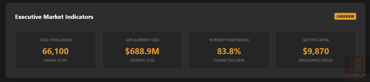This rating is calculated using the Gambling Databases Rating (GDR) methodology, which provides transparent criteria for evaluating iGaming markets worldwide. Click the link to learn how we calculate Operator Ease Score, Player Access Score, and overall market attractiveness ratings.