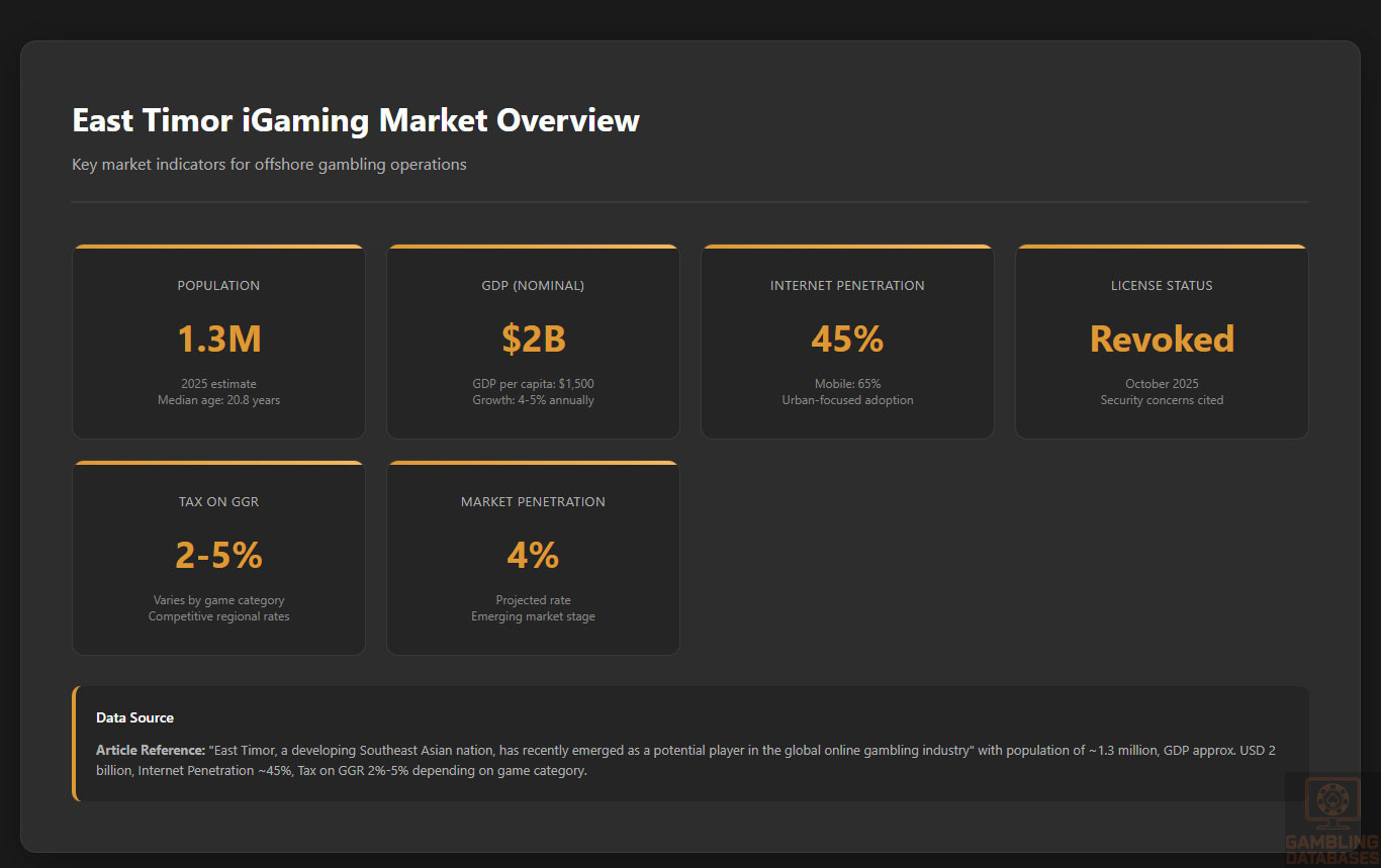 - Local Players Completely Prohibited: The 1.3M East Timorese population cannot legally access any licensed platforms
