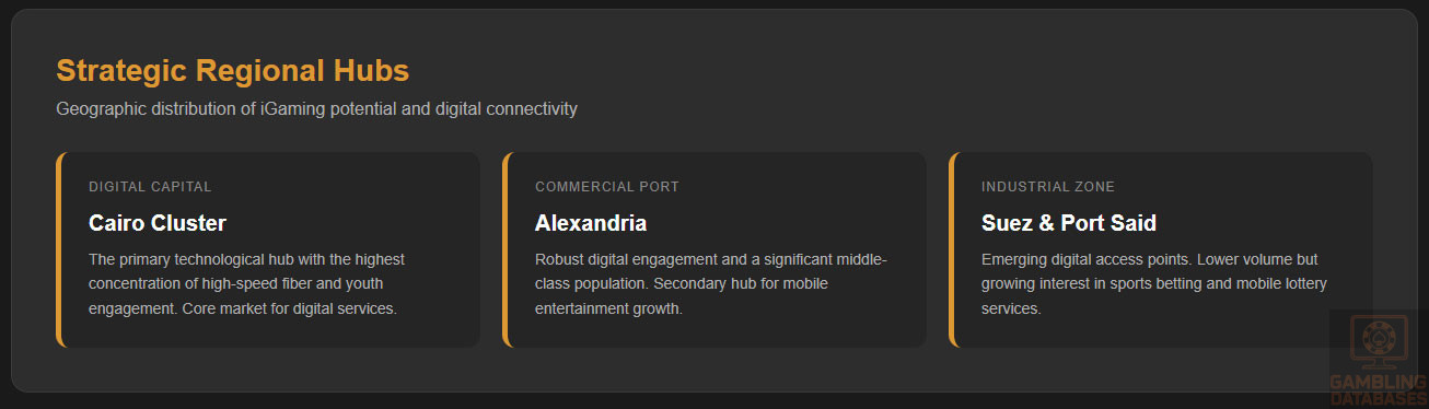 Egypt represents a significant yet complex opportunity within the iGaming sector, characterized by its large, young population and increasing digital connectivity. Despite a predominantly restrictive regulatory environment that heavily limits online gambling activities, the country’s expanding internet and mobile penetration highlight promising future potential for regulated operators.