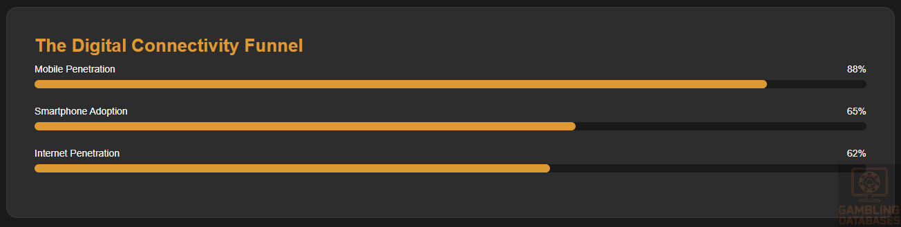 - High mobile penetration (88%) suggests readiness if the market ever regulates.