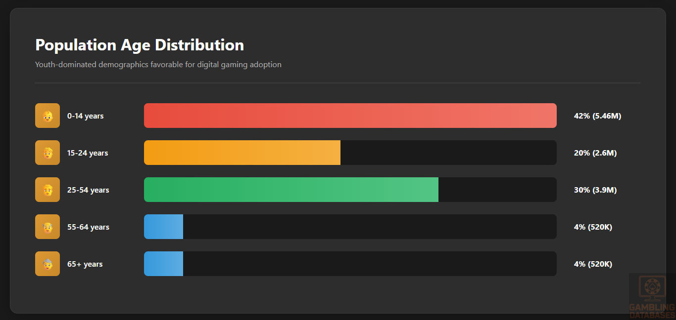 The complete absence of an independent gaming regulator, combined with “variable procedural transparency” and a “relatively informal market structure,” creates massive uncertainty for operators. Most critically, the economics are simply prohibitive: with GDP per capita of only $1,060, total market size of ~$15 million, ARPU of $28 annually, and only 200,000 active users, this market cannot support profitable operations for the vast majority of operators.