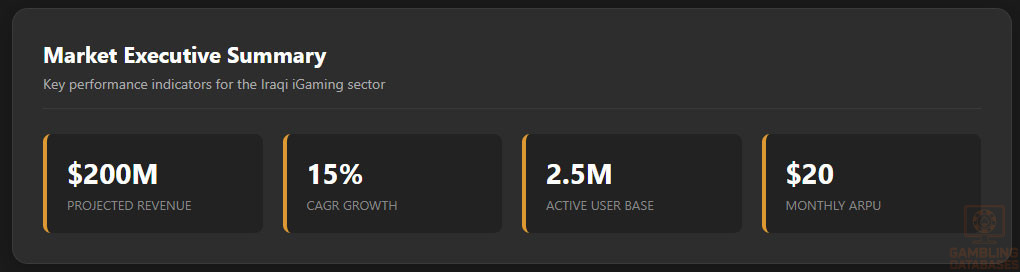 The Iraqi iGaming market is projected to generate revenues of around $200 million by the end of 2025. Historical growth rates approximate a compound annual growth rate (CAGR) of 15%, reflecting robust consumer interest fueled by rising internet adoption and youth engagement.