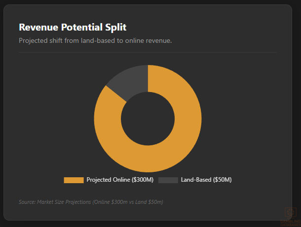 - No Active Market: There are currently zero licensed online operators. The “market size” is entirely projected/speculative.