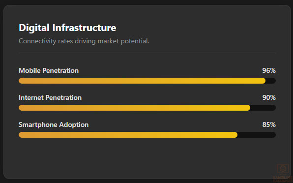 - High Connectivity: 90% internet penetration and 96% mobile penetration provide strong technical infrastructure.