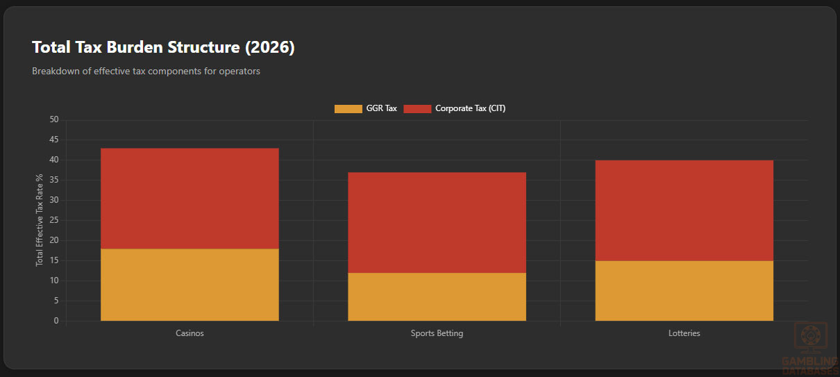 - Rising Tax Burden: Corporate Income Tax (CIT) for gambling operators is set at 25% effective 2026, on top of GGR taxes (12-18%).