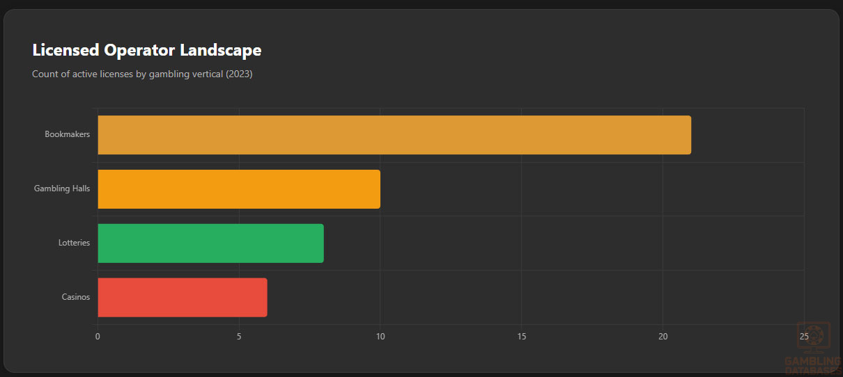 | Licensed Bookmakers | 21 (nationwide including online sports betting) |