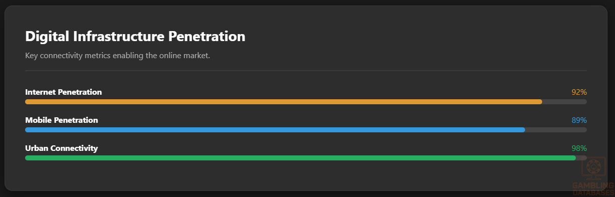 Major cities exhibit near-universal internet access, while regional disparities appear more pronounced in southern and interior provinces. Gambling venues and betting shops concentrate heavily in metropolitan areas, matching population density and economic activity. Regional variations affect operator strategies, with localized marketing and service adaptations common.