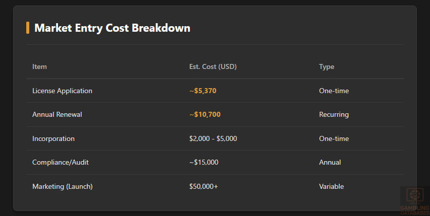 | License Application Fee | €5,000 (~$5,370 USD) |