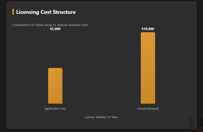 Application fees are set at €5,000, with an annual renewal fee of €10,000. The license term is 15 years, providing long-term operational certainty. Approval timelines average 6-8 weeks, contingent on applicant responsiveness and completeness of documentation.