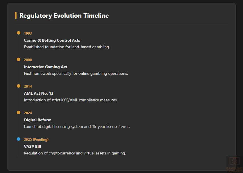 | Relevant Legislation | Interactive Gaming Act (2000), Casino Control Act (1993), Betting Control Act (1993) |