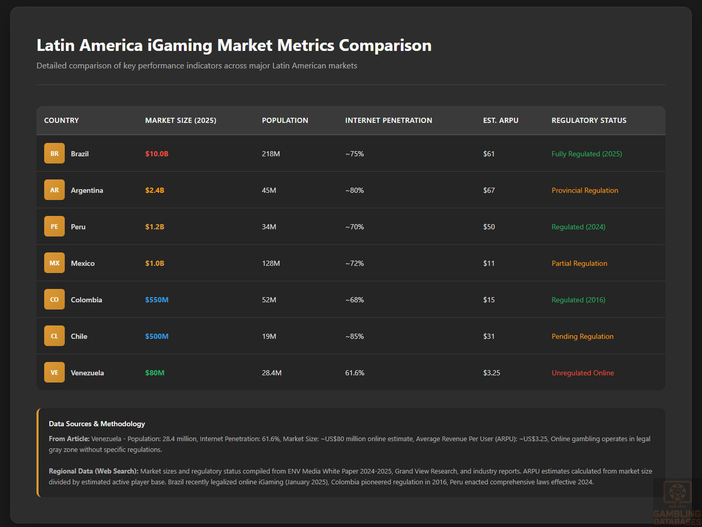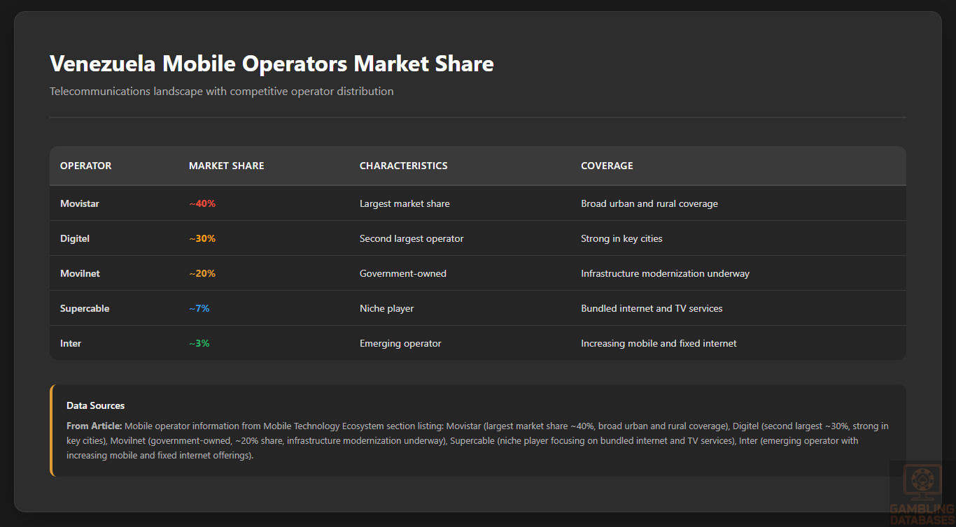 ⚠️ BOTTOM LINE: Venezuela’s combination of regulatory vacuum, economic catastrophe, political instability, microscopic ARPU, and tiny market size make it suitable for ALMOST NO OPERATORS – avoid unless you’re a major regional player already absorbing losses in other challenging Latin American markets and seeking marginal diversification with extremely low expectations.