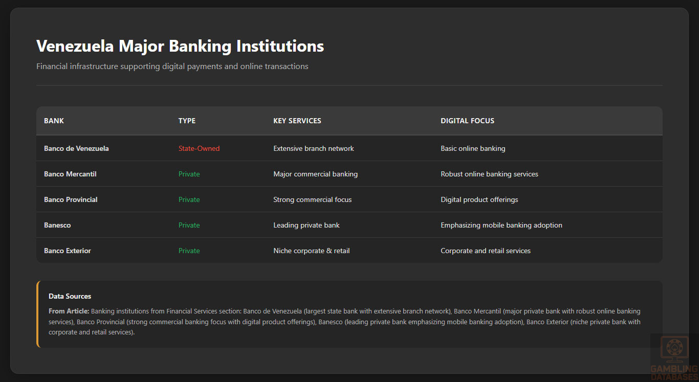 - Payment Infrastructure Crisis: Banking system unreliable with frequent disruptions. International payment processors often exclude Venezuelan transactions. Currency controls complicate fund transfers. Credit card processing inconsistent