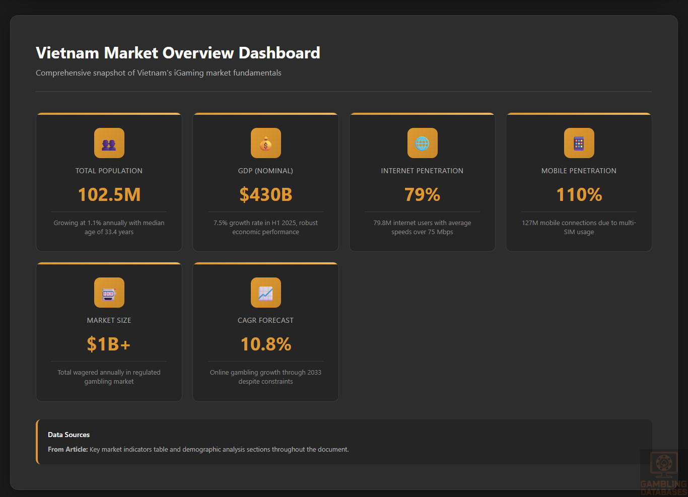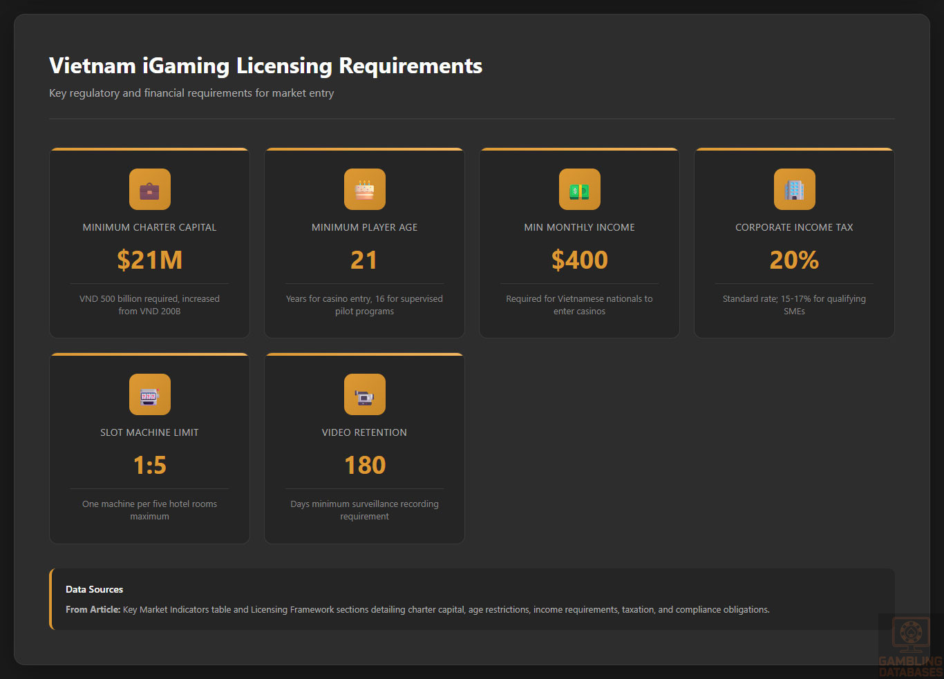 ⚠️ BOTTOM LINE: Vietnam’s combination of online casino prohibition, $21M+ capital requirements, customer restrictions eliminating domestic market access, and regulatory instability make this one of the world’s worst risk-adjusted returns for gambling operators – pursue almost any other market first unless you’re building a $200M+ integrated resort and can wait a decade for returns.