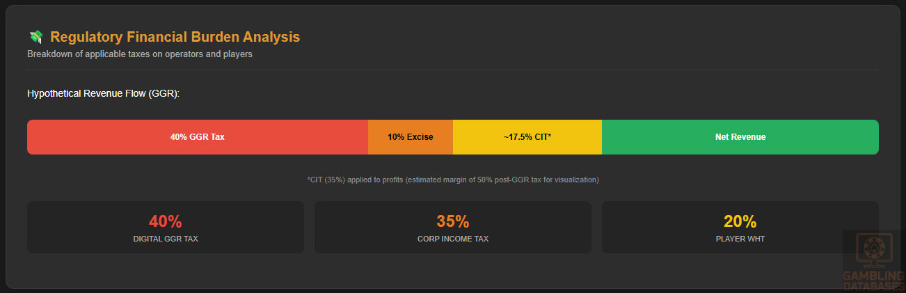 | Licensed Sports Betting Operators | 🔴 High (Financial) | Regulatory compliance is safe, but financial risk is critical due to excessive tax burden and potential tax audits. |